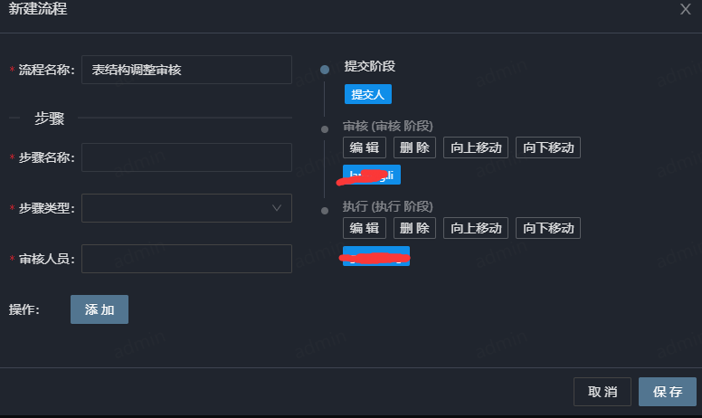 3.4 在管理-流程中新建流程,用于管理数据库修改或查询